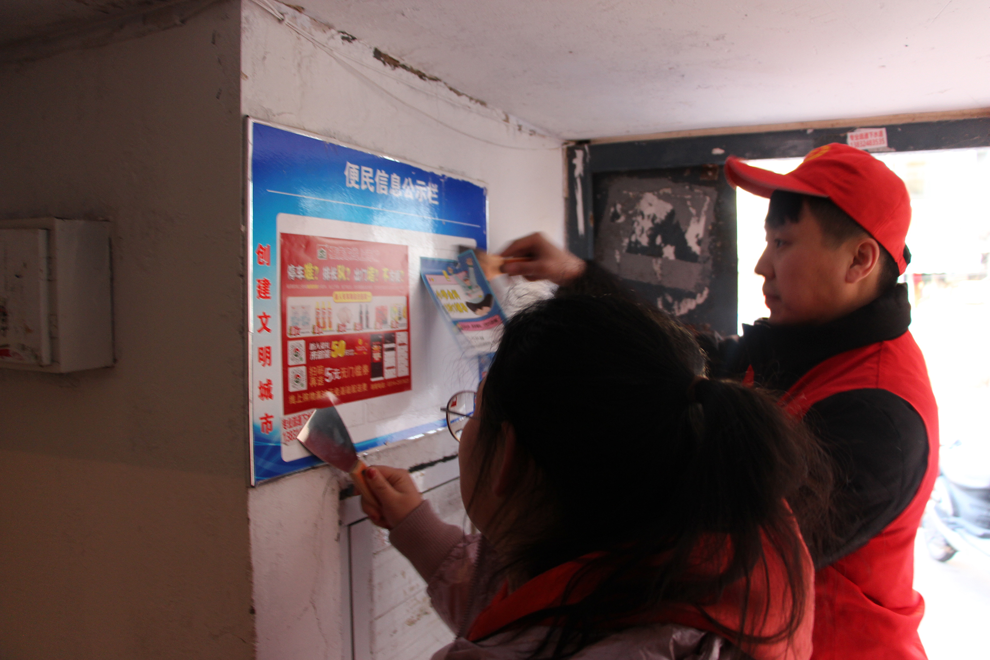 會(huì)后,集團(tuán)公司與會(huì)龍山社區(qū)積極對(duì)接,安排人員分批次深入會(huì)龍山社區(qū),與社區(qū)書記現(xiàn)場(chǎng)溝通并安排部署幫建工作。志愿者們向社區(qū)居民發(fā)放黨的二十大精神宣傳手冊(cè)、對(duì)轄區(qū)內(nèi)消防設(shè)施進(jìn)行清潔檢查、單元樓內(nèi)外非法廣告進(jìn)行清除、對(duì)非機(jī)動(dòng)車進(jìn)行合理擺放、樓內(nèi)外堆放垃圾雜物上門進(jìn)行溝通,向居民講解雜物堆積的潛在危害,進(jìn)一步提升了社區(qū)居民的文明意識(shí)。
