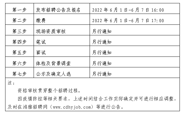 2022年6月1日至2022年6月7日16:00 在鴻雅招聘網(wǎng)(http://www.cdhyjob.com/)、鴻雅微信公眾號、國控集團官方網(wǎng)站(http://m.woaihuazhuang.com/)及上級部門要求的相關(guān)網(wǎng)站等發(fā)布招聘公告。