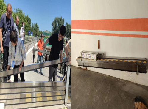 兩宮門地下停車場因地勢較低汛期的最大隱患就是雨水倒灌,這次防汛演練是一次實戰(zhàn)演練,用時5分鐘就完成了一處停車場入口的演練內(nèi)容,做到擋板安裝完畢兩端螺銷固定不松動,擋板中部鋼結(jié)構(gòu)支護不滑動,防汛沙袋堆堵密實。